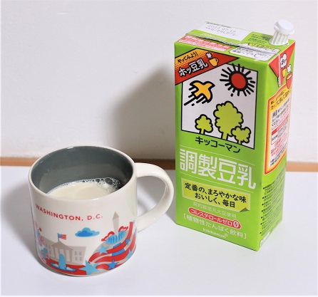 • マグカップに豆乳を210ml入れて、レンジで温める。