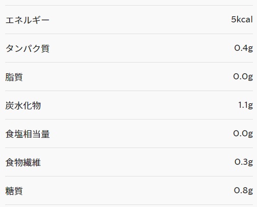 100ml あたりの栄養成分量