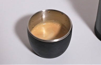 お湯は50ml入れます。これでだいたい30mlのエスプレッソができます。