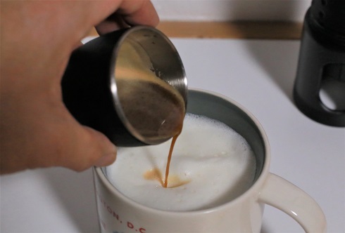 • 豆乳にエスプレッソを注いで完成。