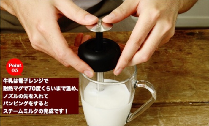 • 温めた豆乳を泡立てる。