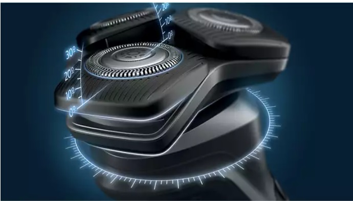 ちなみに同じくフィリップスの7000シリーズは、360-D フレックスヘッドというもので、下のように1つの刃が一方向への傾斜のみの対応となるため、9000シリーズの方が、凸凹頭の私にぴったりと思ったのですね。